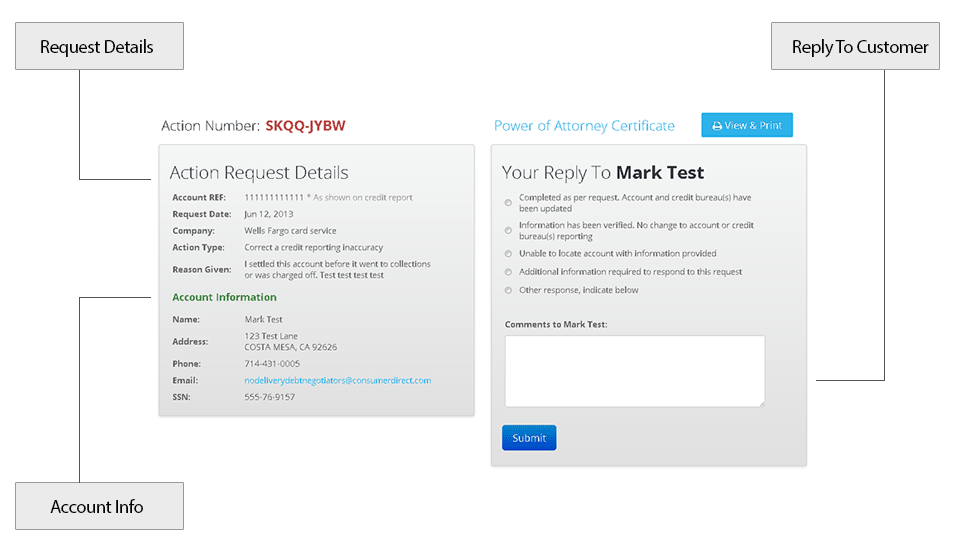 We aim to help not only our mutual consumers but creditors like you as well. We understand the time and money it takes to shift through all consumer related requests, time spent on outbound and inbound customer service calls, and then there is the money spent on postage.